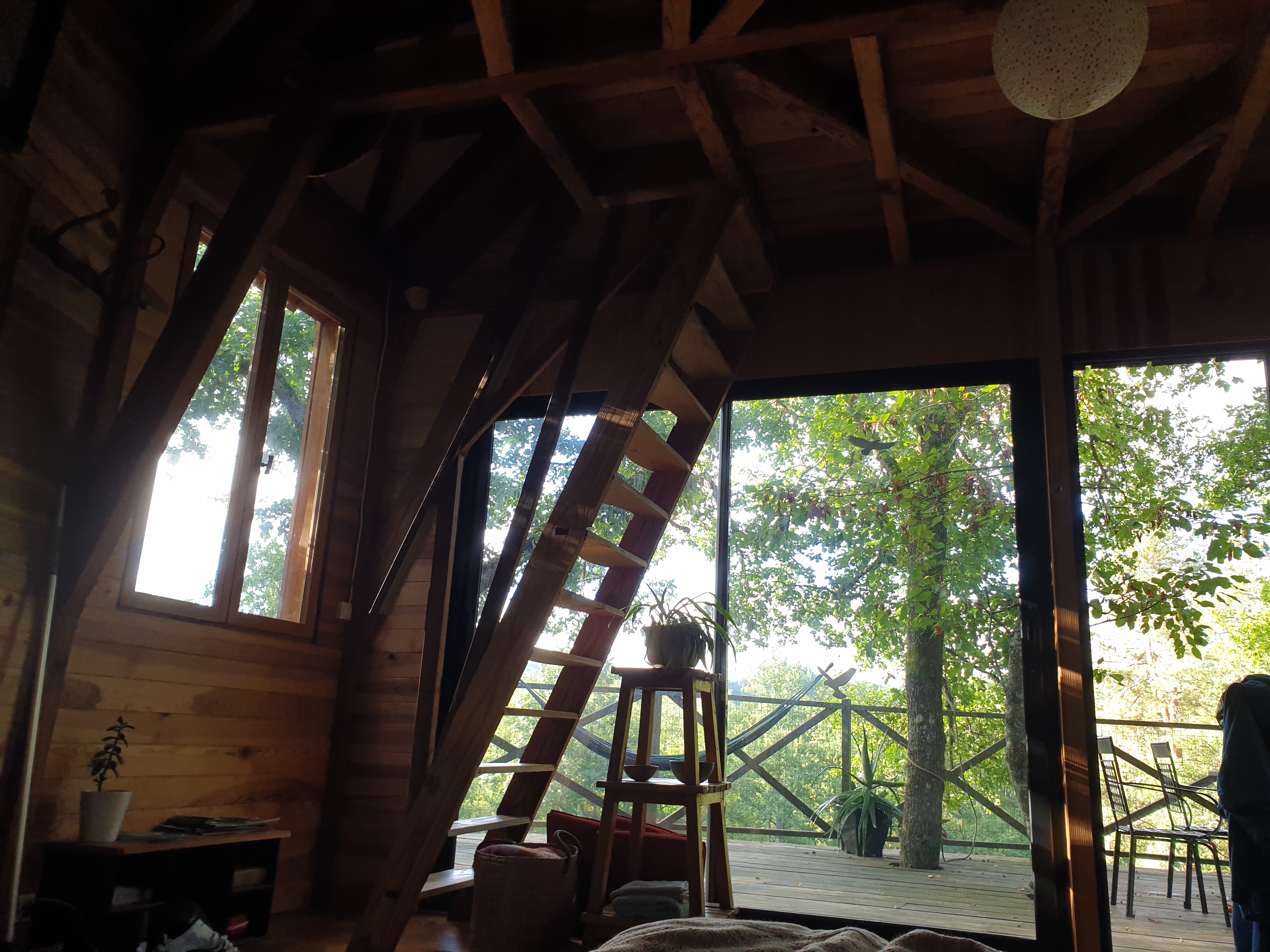 Les cabanes dans les arbres de Charles sont incroyables ! Il offre tous les avantages du camping comme le cadre paisible, se réveiller au son des arbres, déguster sa bière en terrasse, mais aussi le confort de la maison comme un lit confortable, une douche chaude (dans la maison de Charles) et une cuisine bien équipée. Tout est très bien entretenu, propre et confortable. Nous sommes restés avec notre enfant de 1,5 ans qui a adoré - surtout en mangeant de nombreuses mûres à chaque trajet vers et depuis la cabane dans les arbres ! Ce serait encore mieux avec un enfant de 5 ou 6 ans car il y a des balançoires, un ruisseau pour pagayer et des jeux extérieurs pour jouer. Charles et Sandrine étaient très accueillants et arrangeants - leur anglais est excellent, ils nous ont emmenés au mariage de nos amis et ont partagé les légumes de leur jardin. Nous reviendrons certainement. Merci!